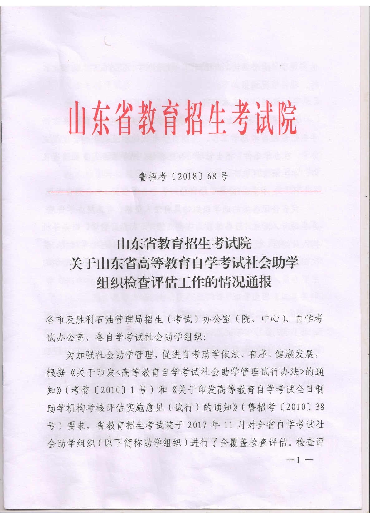 近日,山东省教育招生考试院下发(鲁招考[2018]68号)《关于山东省2017年度高等教育自学考试社会助学组织检查评估结果的通报》,公布了全省118家高等教育自学考试社会助学的检查评估结果,球友会体育被评定为优秀助学组织。