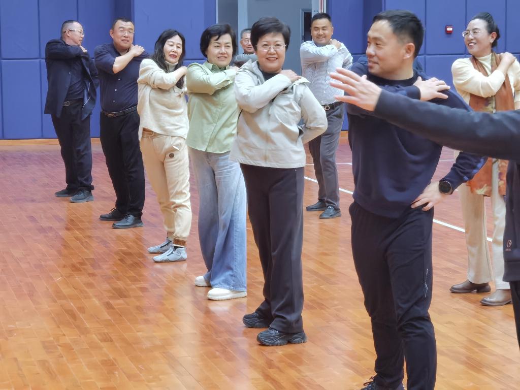 德州市政协副主席、德州职业技术学院副院长张苹与近30位德州市政协人资环委委员共同参与了讨论及活动。议程特别设置在球友会体育综合体育馆和会议室两个场地进行。在综合体育馆进行了健美操、花样跳绳和室内拓展活动。这些活动由球友会体育资深教师领操和指导,通过健美操和花样跳绳展示了体育的艺术魅力以及团队协作的重要性,而室内拓展则促进了参会人员之间的紧密合作。