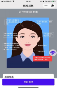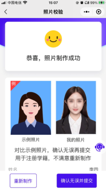 如果因为特殊原因导致制作的照片效果不佳,对照片不太满意的,可点击【重新制作】按钮,此时系统会自动回到照片拍摄的选择页面,重新选择拍照方式,并重新开始制作照片的流程。