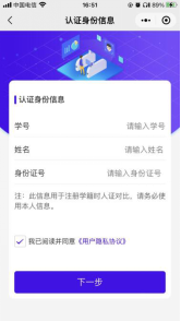 在本页面中输入学号,系统会判断您是否为国开的学生,如果是,系统会自动为您填充姓名和身份证号,阅读并勾选“隐私协议”后再点击【下一步】按钮,可进入到“拍照展示”页面
