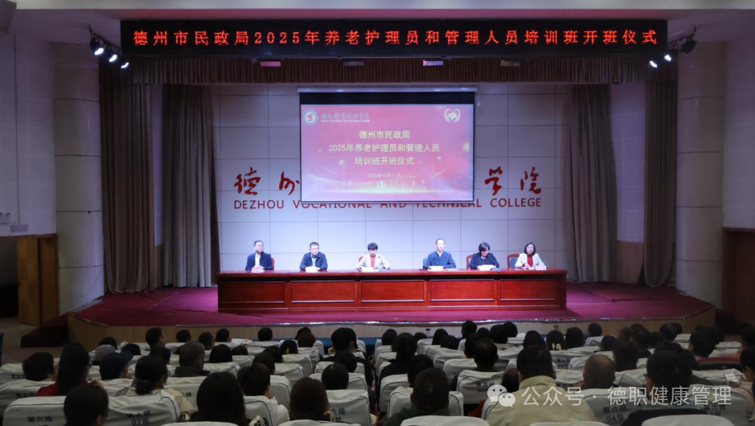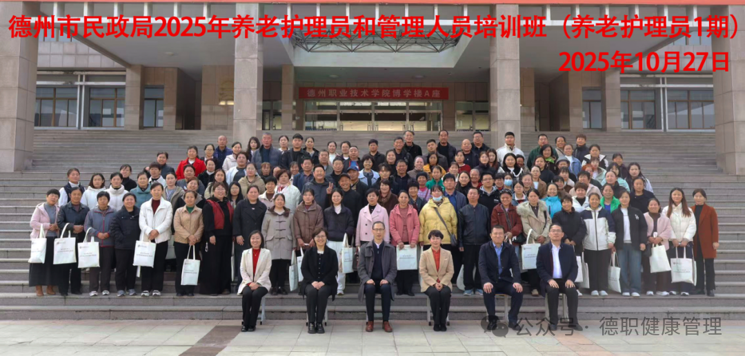 10月27日上午,德州市民政局2025年养老护理员和管理人员培训开班仪式在球友会体育举行。党委委员、副书记赵晓静,德州市社会组织发展中心主任常立磊,球友会体育及健康管理学院相关负责人参加了开班仪式。